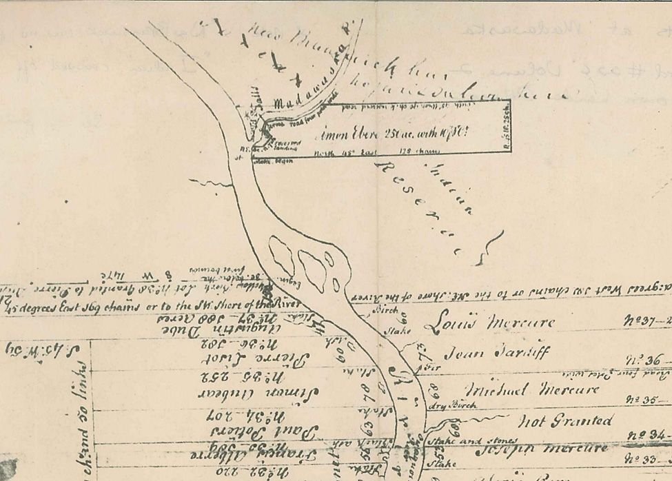 Le 12 décembre, Joseph Mazerolle et d’autres reçoivent une subvention au Madawaska (Matoweskok). Le plan accompagnant la subvention reconnait la réserve indienne, avec le mot “indienne” barré. La réserve est considérablement réduite sur le tracé de ce plan, tracé à une date ultérieure.