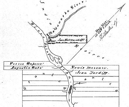 Le 12 décembre, Joseph Mazerolle et d’autres reçoivent une subvention au Madawaska (Matoweskok). Le plan accompagnant la subvention reconnait la réserve indienne, avec le mot “indienne” barré. La réserve est considérablement réduite sur le tracé de ce plan, tracé à une date ultérieure.